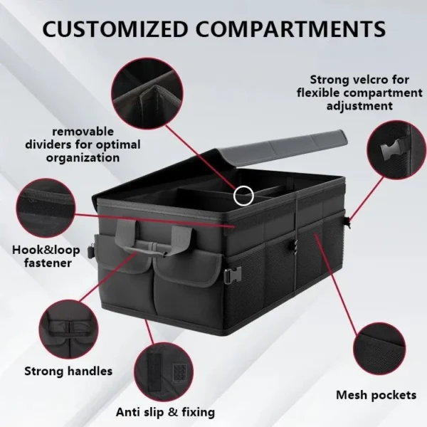 *Foldable Premium Car Trunk Boot Organizer With Lid, Partitions & Handles*